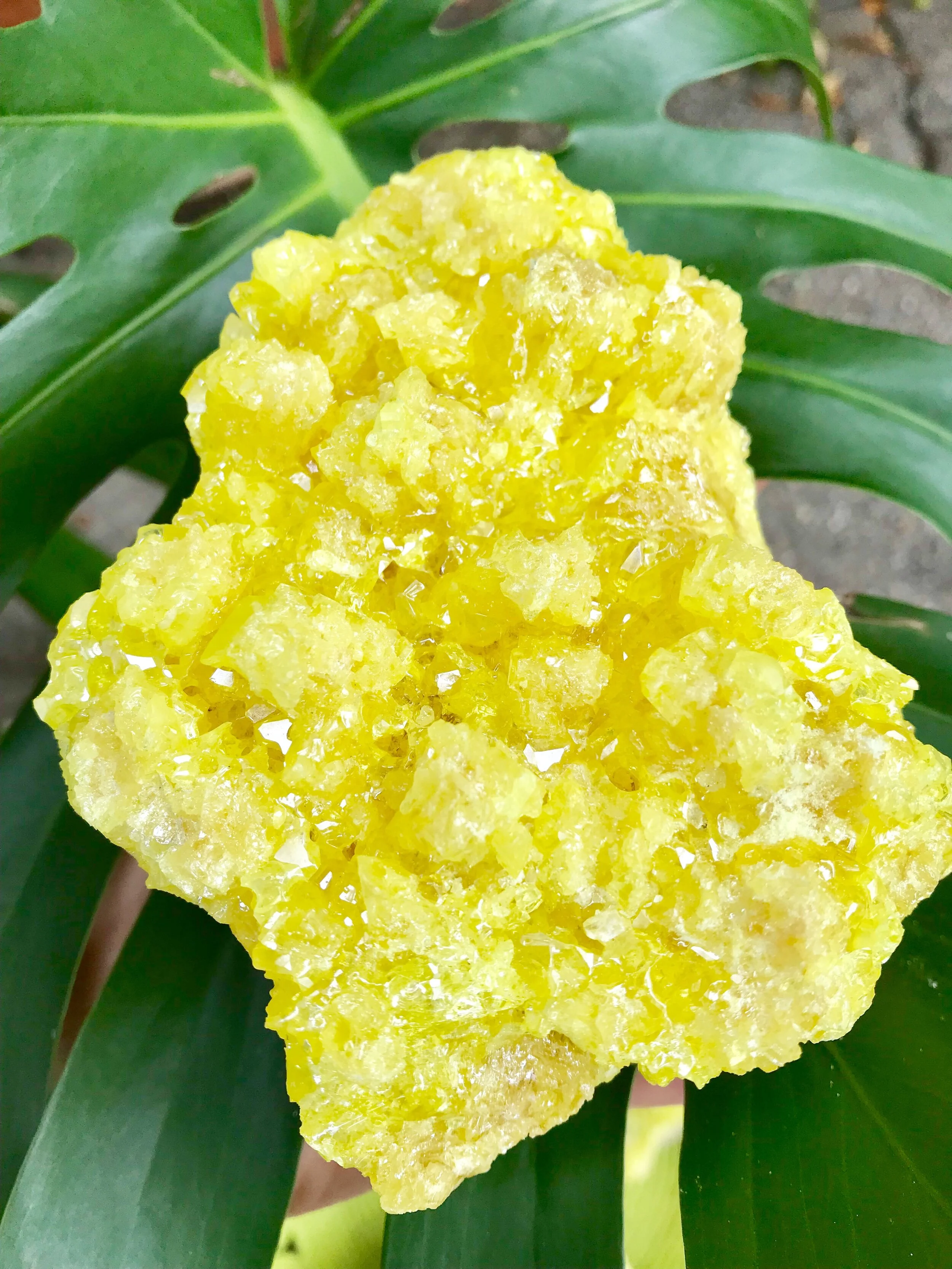Practice sulfur stone gazing to let this powerful cleansing stone work its magic. Set the stone 3 - 5 feet away and find a comfortable seat. Allow your eyes to settle on the stone and begin to breathe rhythmically, breathing to the beat of your own internal drum. Keep this up for a few minutes at least, going for as long as feel right for you. In your own time, allow your eyes to close and visualize the bright yellow light sweeping through your body clearing you out for some new delight!